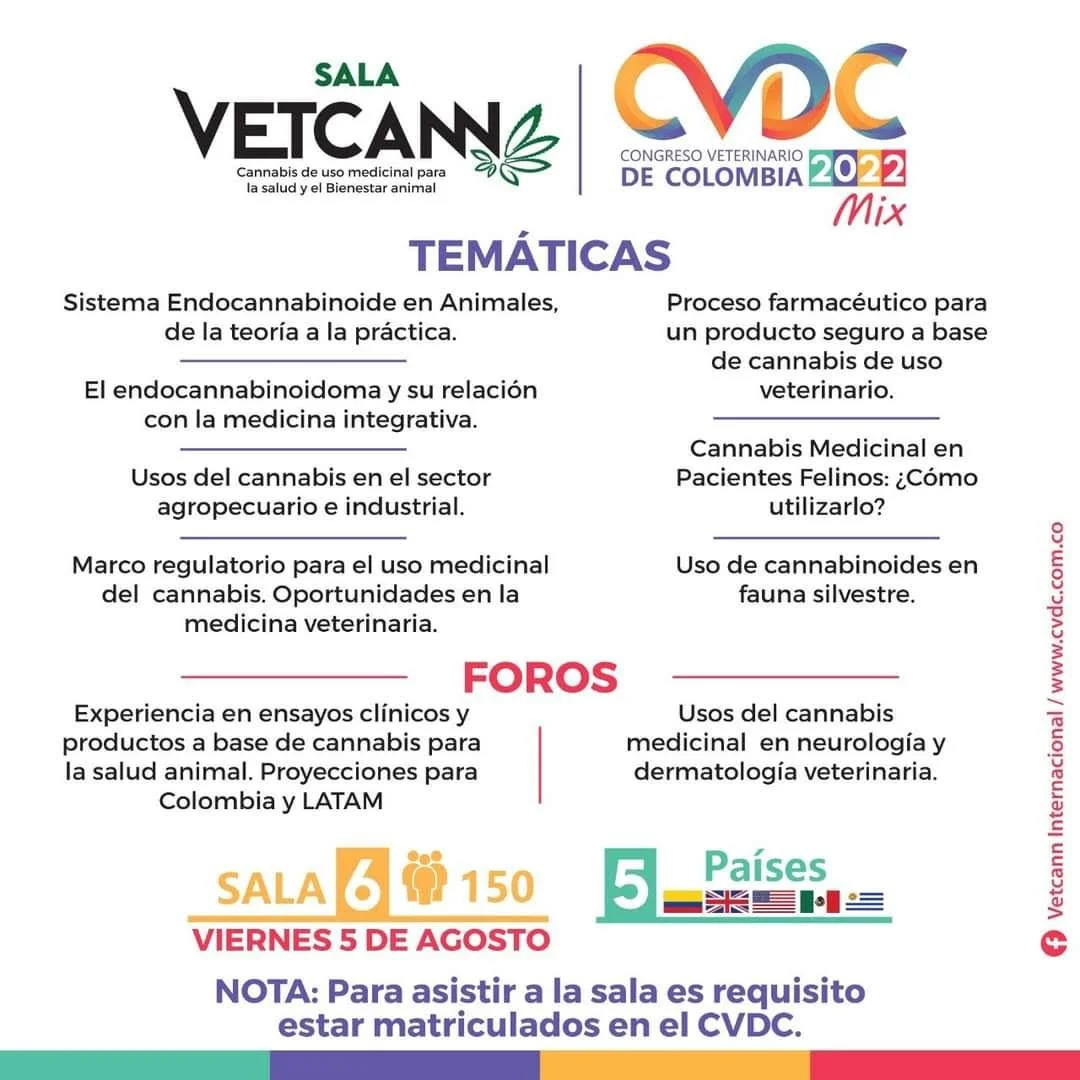 Esta semana se lleva a cabo en la ciudad Pereira el Congreso Veterinario de Colombia 2022 (CVDC) y en esta edición tendrá una sala de la Red de Cannabis medicinal Veterinaria VETCANN durante el viernes 5 de agosto.