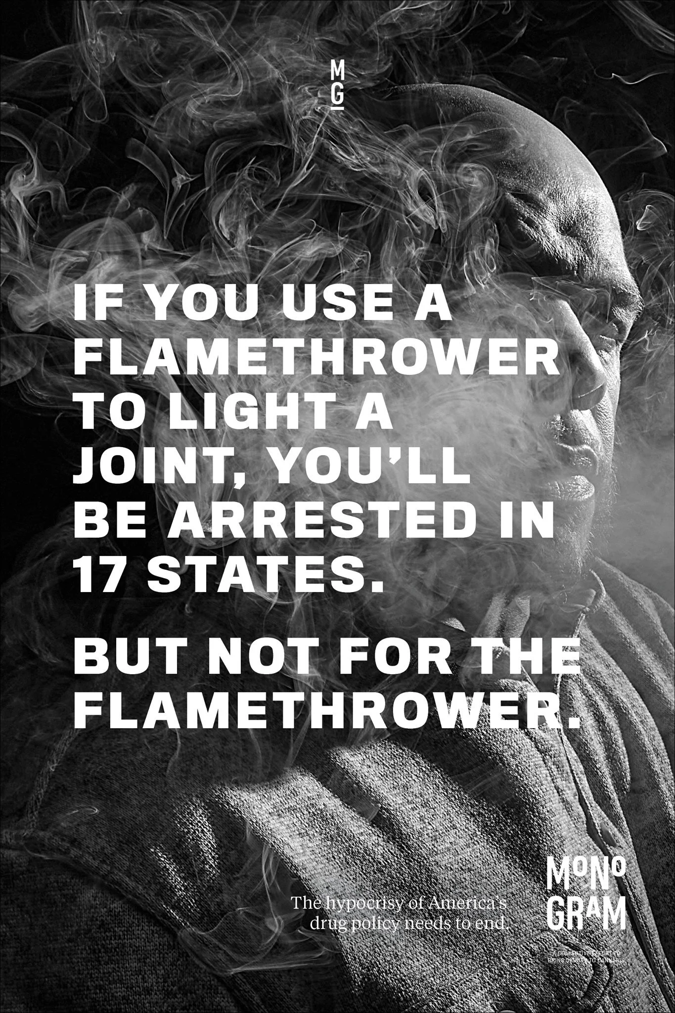 A través de piezas de marketing, MONOGRAM, propiedad del rapero y empresario Jay-Z, cuenta las historias de personas que han sido acusadas por delitos relacionados con el cannabis y pone de manifiesto lo absurdo de las legislaciones prohibicionistas y su impacto en el racismo sistémico.